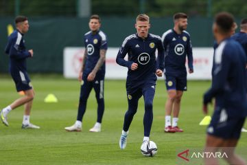 Pemain Skotlandia Scott McTominay berlatih jelang play off kualifikasi Piala Dunia 2022 zona eropa di Oriam, Edinburgh, Skotlandia, Minggu (29/5/2022). Skotlandia akan menghadapi Ukrania pada laga tunda kualifikasi Piala Dunia 2022. Pemenang pertandingan ini akan menghadapi Wales empat hari kemudian untuk memperebutkan satu tempat di putaran final Piala Dunia 2022. ANTARA FOTO/REUTERS/Russell Cheyne/pras.
