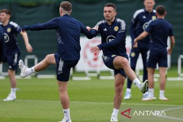 Pemain Skotlandia berlatih jelang play off kualifikasi Piala Dunia 2022 zona eropa di Oriam, Edinburgh, Skotlandia, Minggu (29/5/2022). Skotlandia akan menghadapi Ukrania pada laga tunda kualifikasi Piala Dunia 2022. Pemenang pertandingan ini akan menghadapi Wales empat hari kemudian untuk memperebutkan satu tempat di putaran final Piala Dunia 2022. ANTARA FOTO/REUTERS/Russell Cheyne/pras.