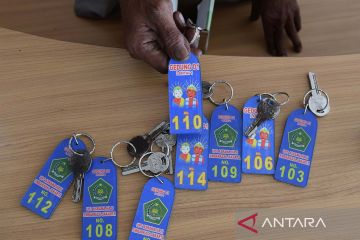 Petugas merapikan kunci-kunci kamar jemah calon haji di Asrama Haji Pondok Gede, Jakarta, Rabu (1/6/2022). Kementerian Agama mempersiapkan sarana dan prasarana di lokasi tersebut unduk menyambut jamaah jemaah calon haji DKI Jakarta mulai Jumat (3/6/2022). ANTARA FOTO/Aditya Pradana Putra/aww.