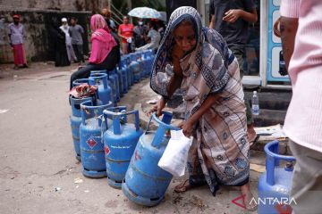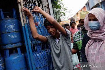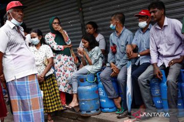 Warga antre membeli gas LPG di sebuah depot penjualan gas di tengah berlanjutnya krisis ekonomi di Kolombo, Sri Lanka, Rabu (1/6/2022). ANTARA FOTO/REUTERS/Dinuka Liyanawatte/wsj.