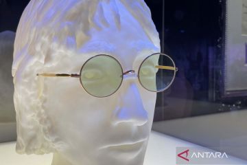 Kacamata milik personel the Beatles John Lennon dipajang dalam Pameran "American History" yang menampilkan barang koleksi pribadi milik miliarder AS Jim Irsay di Kota New York, Amerika Serikat, Kamis (2/6/2022). ANTARA FOTO/REUTERS/Hussein Waaile /wsj.