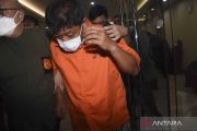 Buronan warga negara Jepang Mitsuhiro Taniguchi dikawal petugas imigrasi menuju ruang konferensi pers di Gedung Direktorat Jenderal Imigrasi, Jakarta, Rabu (8/6/2022). Mitsuhiro Taniguchi diamankan oleh pihak imigrasi Bandar Lampung di daerah Kalirejo, Lampung Tengah pada Selasa (7/6) dalam kasus dugaan penipuan dana subsidi bagi usaha kecil yang mengalami dampak pandemi COVID-19 yang tengah diusut pihak kepolisian di Jepang. ANTARA FOTO/Indrianto Eko Suwarso/wsj.