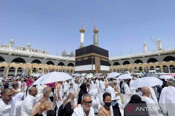 Jamaah calon haji tawaf mengelilingi Ka'bah di Masjidil Haram dalam rangkaian ibadah Haji di Kota Suci Mekah, Arab Saudi, Jumat (1/7/2022). Jamaah calon haji akan melakukan wukuf di Arafah mulai Kamis 7 Juli malam hingga Jumat 8 Juli malam. ANTARA FOTO/REUTERS/Mohammed Salem/wsj.