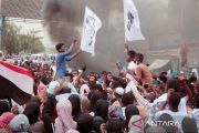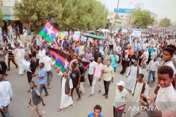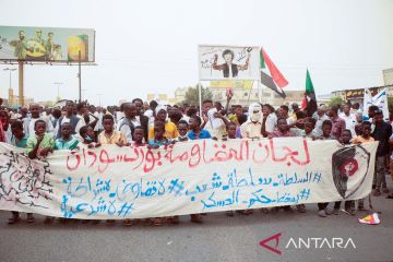 Sejumlah orang mengikuti unjuk rasa menentang kekuasaan militer, menyusul kudeta terakhir di Port Sudan, Red Sea State, Sudan (30/6/2022). ANTARA FOTO/REUTERS/Stringer/aww.