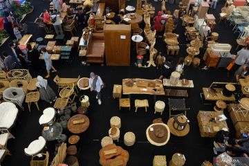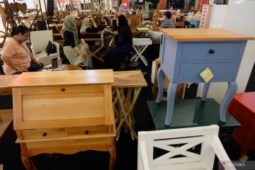 Pengunjung mengamati produk-produk mebel kualitas ekspor yang dijual pada pameran Obral Mebel Solo di salah satu pusat perbelanjaan di Sukoharjo, Jawa Tengah, Senin (4/7/2022). Pameran tersebut digelar untuk mendukung kebangkitan ekonomi pelaku UMKM mebel di Solo Raya. ANTARA FOTO/Maulana Surya/hp.