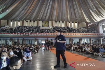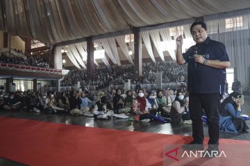 Menteri BUMN Erick Thohir menyampaikan paparan pada Kuliah Umum Tokoh Nasional di Universitas Jenderal Soedirman (Unsoed), Purwokerto, Banyumas, Jawa Tengah, Selasa (5/7/2022). Kuliah Umum tersebut membahas "Kolaborasi BUMN dan Perguruan Tinggi dalam Menciptakan Generasi Digital yang Tangguh di Era Disrupsi". ANTARA FOTO/Dhemas Reviyanto/aww.