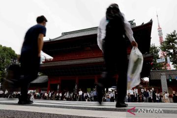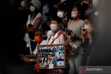 Orang-orang menunggu pemakaman mendiang mantan PM Jepang Shinzo Abe selesai di Kuil Zojoji, Tokyo, Jepang, Selasa (12/7/2022). ANTARA FOTO/REUTERS/Issei Kato/wsj.