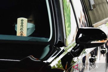 Mobil jenazah melintas usai pemakaman mendiang mantan PM Jepang Shinzo Abe di Kuil Zojoji, Tokyo, Jepang, Selasa (12/7/2022). ANTARA FOTO/REUTERS/Issei Kato/wsj.