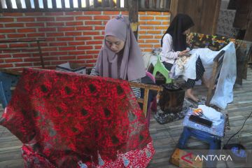 Perajin menyelesaikan pembuatan batik di Muria Batik Kudus, Desa Karangmalang, Gebog, Kudus, Jawa Tengah, Jumat (15/7/2022). Menteri BUMN Erick Thohir meminta Himpunan Bank Milik Negara (Himbara) untuk meningkatkan Kredit Usaha rakyat (KUR) bagi para pelaku Usaha Mikro, Kecil dan Menengah (UMKM) menyusul baru terserapnya 50 persen dari Rp373 triliun anggaran yang disediakan pemerintah untuk program KUR tahun ini. ANTARA FOTO/Yusuf Nugroho/wsj.