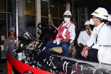 Menteri Perhubungan Budi Karya Sumadi (kedua kanan) meninjau Bus Listrik G20 di PT INKA (Persero) Madiun, Jawa Timur, Minggu (17/7/2022). Dalam kunjungan kerjanya tersebut Budi Karya Sumadi ingin memastikan bus listrik buatan PT INKA siap digunakan untuk kegiatan Konferensi Tingkat Tinggi G20 Bali mendatang. ANTARA FOTO/Siswowidodo/aww.