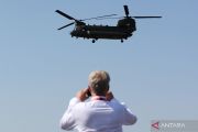 Pengunjung menyaksikan penerbangan Helikopter TAI ATAK dalam perhelatan Farnborough International Airshow di Farnborough, Inggris, Selasa (19/7/2022). ANTARA FOTO/REUTERS/Matthew Childs/foc.