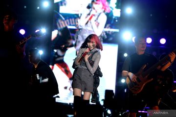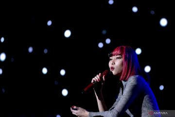 Penyanyi Isyana Sarasvati beraksi menghibur penonton saat konser bertajuk 'Lexiconcert Live on Tour' di kawasan Nusa Dua, Badung, Bali, Jumat (22/7/2022). Pada konser terakhir dalam rangkaian 'Lexiconcert Live on Tour' babak pertama tersebut, Isyana Sarasvati membawakan sejumlah lagu seperti Lexicon, Il Sogno, Unlock the Key serta Sikap Duniawi. ANTARA FOTO/Fikri Yusuf/hp.