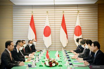 Presiden Joko Widodo (kiri) melakukan pertemuan bilateral dengan Perdana Menteri Jepang Kishida Fumio (kanan) di Kantor Perdana Menteri Jepang, Tokyo, Jepang, Rabu (27/7/2022). Kedua pemimpin negara sepakat untuk memperkuat kerja sama di bidang perdagangan dan investasi. ANTARA FOTO/Biro Pers Setpres/Laily Rachev/sgd/hp.