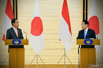 Presiden Joko Widodo (kiri) dan Perdana Menteri Jepang Kishida Fumio menyampaikan keterangan pers seusai pertemuan bilateral di Kantor Perdana Menteri Jepang, Tokyo, Jepang, Rabu (27/7/2022). Kedua pemimpin negara sepakat untuk memperkuat kerja sama di bidang perdagangan dan investasi. ANTARA FOTO/Biro Pers Setpres/Laily Rachev/sgd/hp.