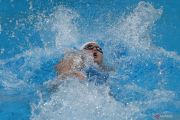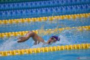 Perenang DKI Jakarta Flairene Candrea memacu kecepatan dalam babak final nomor 50 meter gaya punggung putri kelompok umur 3 Kejuaraan Nasional Festival Akuatik Indonesia di Akuatik Stadium Gelora Bung Karno, Jakarta, Rabu (27/7/2022). Flairene menjadi juara nomor tersebut dengan catatan waktu terbaik 30,21 detik. ANTARA FOTO/Aditya Pradana Putra/hp.