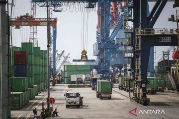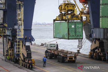 Pekerja membongkar muat peti kemas di Pelabuhan Tanjung Priok, Jakarta, Jumat (5/8/2022). Badan Pusat Statistik mencatat ekspor Indonesia pada triwulan II 2022 meningkat sebesar 19,74 persen jika dibandingkan dengan periode yang sama tahun sebelumnya (year-on-year/yoy). ANTARA FOTO/Rivan Awal Lingga/wsj.