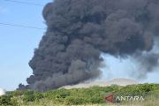Asap tebal membumbung dari tangki penyimpanan bahan bakar di dekat pelabuhan Matanzas, Kuba, Minggu (7/8/2022). Kementerian Kesehatan Masyarakat Kuba melaporkan sedikitnya satu orang tewas, 122 orang lainnya luka-luka dan 16 orang dilaporkan hilang dalam kebakaran skala besar usai serangkaian ledakan yang mengguncang sebuah fasilitas penyimpanan bahan bakar di Kuba. ANTARA FOTO/Xinhua/Stringer/rwa.