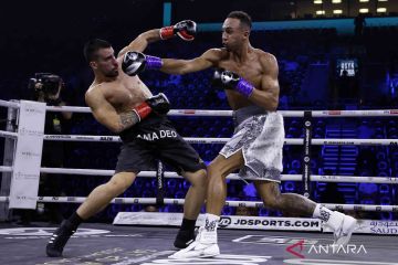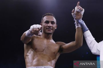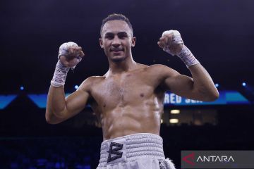 Petinju Inggris Ben Whittaker menjadi pemenang usai melawan Petinju Kroasi Petar Nosic dalam pertandingan tinju dunia perebutan sabuk juara kelas berat ringan di Kompleks Olah Raga King Abdullah, Jeddah, Saudi Arabia, Sabtu (20/8/2022). Ben Whittaker menang dengan angka mutlak (unanimous decision) atas lawannya Petar Nosic dalam pertandingan yang digelar enam ronde tersebut. ANTARA FOTO/Action Images/Andrew Couldridge/via REUTERS/wsj.