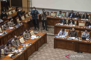 Kapolri Jenderal Pol Listyo Sigit Prabowo (kiri bawah) mengikuti rapat kerja dengan Komisi III DPR di Kompleks Parlemen, Senayan, Jakarta, Rabu (24/8/2022). Rapat tersebut membahas kasus dugaan pembunuhan berencana terhadap Brigadir Yosua di rumah dinas mantan Kadiv Propam Irjen Pol Ferdy Sambo. ANTARA FOTO/Aprillio Akbar/wsj.