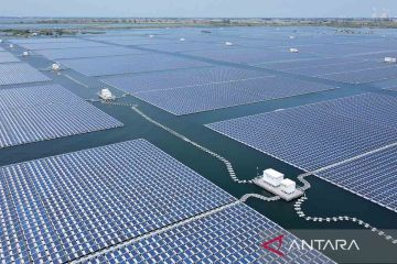 Foto udara pemandangan pembangkit listrik fotovoltaik terapung Maowei di Gucheng, wilayah Yingshang, Provinsi Anhui, China timur, Kamis (25/8/2022). Gucheng mengubah kawasan bekas penambangan batu bara menjadi basis pembangkit listrik fotovoltaik terapung yang dioperasikan dengan kapasitas terpasang 130 MW. Rata-rata listrik yang dihasilkan per tahunnya mencapai 136 juta kilowatt-jam (kWh), menghemat sekitar 54.400 ton batu bara standar dan mengurangi 135.600 ton emisi karbon dioksida setiap tahun. ANTARA FOTO/Xinhua/Huang Bohan/rwa.