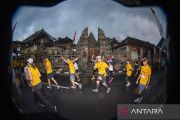 Peserta menyapa warga ketika mengikuti ajang Maybank Marathon 2022 di Gianyar, Bali, Minggu (28/8/2022). Sebanyak 10 ribu pelari dari 50 negara mengikuti Maybank Marathon 2022 yang memperlombakan kategori maraton, half maraton dan 10k dengan total hadiah Rp2,4 miliar. ANTARA FOTO/Zabur Karuru/aww.