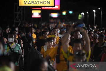 Peserta berlari pada ajang Maybank Marathon 2022 di Gianyar, Bali, Minggu (28/8/2022). Sebanyak 10 ribu pelari dari 50 negara mengikuti Maybank Marathon 2022 yang memperlombakan kategori maraton, half maraton dan 10k dengan total hadiah Rp2,4 miliar. ANTARA FOTO/Zabur Karuru/aww.
