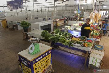 Kondisi Pasar Tim Pengendali Inflasi Daerah (TPID) dua sepi pedagang di kompleks Dreamland, Batam, Kepulauan Riau, Selasa (30/8/2022). Pasar yang merupakan Pasar TPID kedua yang menjadi acuan harga bagi pasar-pasar lain di daerah tersebut sepi Pedagang, salah satunya diakibatkan kurangnya pendapatan dikarenakan para pembeli lebih memilih dagangan yang dijual pada lapak pasar liar yang dibuka pedagang di pinggir jalan umum dan lebih dekat dengan permukiman warga. ANTARA FOTO/Teguh Prihatna/foc.