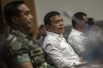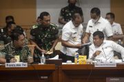 Wamenhan Muhammad Herindra (kedua kiri) bersama Panglima TNI Jenderal TNI Andika Perkasa (kiri) mengikuti rapat kerja dengan Komisi I DPR di Kompleks Parlemen, Senayan, Jakarta, Senin (5/9/2022). Rapat kerja tersebut membahas RKA Kemhan/TNI TA 2023 dan isu-isu aktual lainnya. ANTARA FOTO/Aprillio Akbar/hp.
