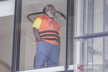 Bupati Mimika Eltinus Omaleng bersiap menjalani pemeriksaan di gedung KPK, Jakarta, Kamis (8/9/2022). Eltinus Omaleng diperiksa KPK dalam kasus dugaan korupsi pembangunan Gereja Kingmi Mile 32 di Kabupaten Mimika, Papua. ANTARA FOTO/Hafidz Mubarak A/wsj.