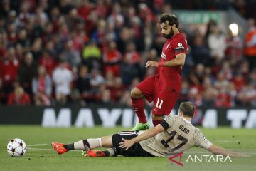 Pemain Liverpool Mohamed Salah berebut bola dengan pemain Ajax Amsterdam Daley Blind saat laga Liga Champions Grup A di Anfield, Liverpool, Inggris (13/9/2022). Bermain di kandang, Liverpool berhasil mengalahkan Ajax Amsterdam dengan skor 2-1. ANTARA FOTO/REUTERS/Craig Brough /aww.