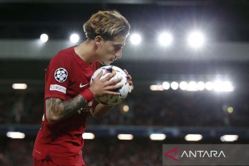 Pemain Liverpool Kostas Tsimikas memegang bola saat laga Liga Champions Grup A melawan Ajax Amsterdam di Anfield, Liverpool, Inggris (13/9/2022). Bermain di kandang, Liverpool berhasil mengalahkan Ajax Amsterdam dengan skor 2-1. ANTARA FOTO/Action Images via Reuters/Ed Sykes/aww.