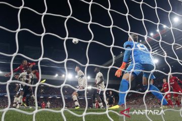 Pemain Liverpool Joel Matip mencetak gol kedua ke gawang Ajax Amsterdam yang dijaga Remko Pasveer pada laga Liga Champions Grup A di Anfield, Liverpool, Inggris (13/9/2022). Bermain di kandang, Liverpool berhasil mengalahkan Ajax Amsterdam dengan skor 2-1. ANTARA FOTO/ REUTERS/Craig Brough /aww.