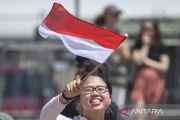 Warga Negara Indonesia (WNI) yang tinggal di Cairns, Australia melambaikan tangan saat melepas KRI Bima Suci-945 menuju Darwin, Australia di Dermaga Cairns, Queensland, Australia, Sabtu (24/9/2022). ANTARA FOTO/Nova Wahyudi/aww.