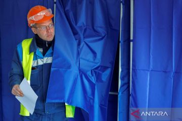 Seorang warga memasukkan surat suaranya ke dalam kotak suara di Tempat Pemungutan Suara pada hari kedua Referendum Republik Rakyat Donetsk bergabung dengan Rusia di Mariupol, Ukraina, Sabtu (24/9/2022). Rusia mulai menggelar pemungutan suara dalam referendum tersebut pada Jumat (23/9/2022) di Republik Rakyat Donetsk dan Luhansk, juga digelar di dua wilayah pendudukan lain, yakni Zaporizhzhia dan Kerhson yang akan berlanjut hingga Selasa (27/9/2022) mendatang. ANTARA FOTO/REUTERS/Alexander Ermochenko/wsj.