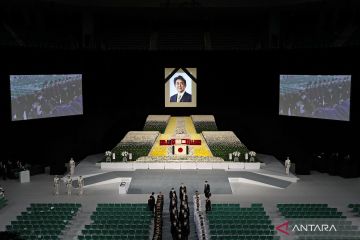 Suasana saat pemakaman kenegaraan mantan PM Jepang Shinzo Abe di Budokan di Tokyo, Jepang, Selasa (27/9/2022). ANTARA FOTO/Takashi Aoyama/Pool via REUTERS/foc.