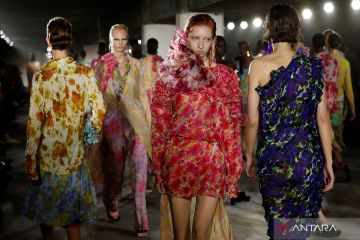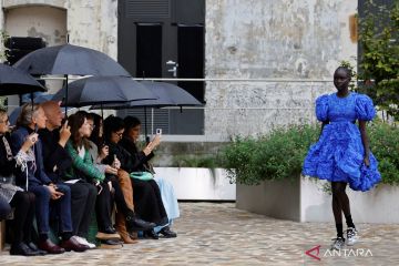 Model memperagakan busana rancangan Cecilie Bahnsen dalam pagelaran koleksi Spring-Summer 2023 Paris Fashion Week di Paris, Prancis, Rabu (28/9/2022). ANTARA FOTO/REUTERS/Johanna Geron/foc.