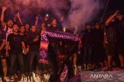 Sejumlah suporter klub sepak bola berkumpul saat doa bersama tragedi Kanjuruhan di Stadion Mandala Krida, Yogyakarta, Selasa (4/10/2022) malam. Acara yang dihadiri oleh ribuan suporter dari sejumlah klub di Indonesia khususnya DIY dan Jawa Tengah itu sebagai bentuk solidaritas atas tragedi Stadion Kanjuruhan Malang yang merenggut nyawa ratusan orang Sabtu (1/10/2022) lalu. ANTARA FOTO/Kalandra/rwa.
