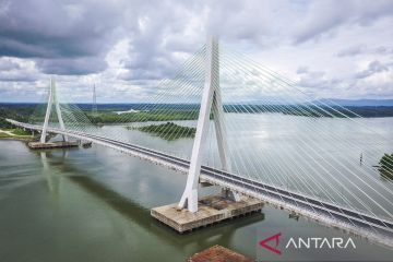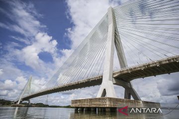 Suasana Jembatan Pulau Balang penghubung Balikpapan dengan Ibu Kota Negara (IKN) Nusantara, Kalimantan Timur, Jumat (7/10/2022). Jembatan yang merupakan akses untuk mempercepat perjalanan menuju IKN Nusantara yang telah rampung itu, saat ini belum dapat difungsikan karena jalan sisi darat dari Kota Balikpapan belum terbangun. ANTARA FOTO/Rivan Awal Lingga/rwa.