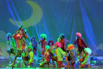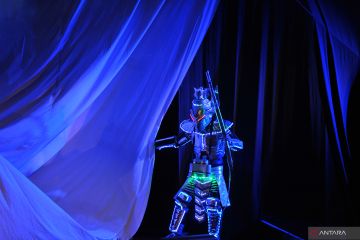 Seniman dari Teater Tanah Air menampilkan pertunjukan teater visual berjudul "HELP!" saat Festival Seni Bali Jani (FSBJ) IV Tahun 2022 di Taman Budaya Bali, Denpasar, Bali, Selasa (11/10/2022). Pertunjukan teater karya seniman Putu Wijaya tersebut menceritakan tentang perjuangan anak-anak untuk menaklukkan dua bandit yang mengenakan pakaian perang dengan gerakan-gerakan robot. ANTARA FOTO/Nyoman Hendra Wibowo/hp.