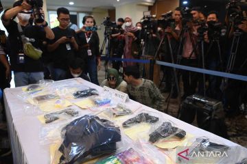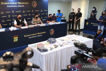 Wartawan mengambil gambar barang bukti kasus perempuan penodong pistol ke personel Paspampres, di Polda Metro Jaya, Jakarta Rabu (26/10/2022). Polda Metro Jaya menetapkan perempuan bernama Siti Alina sebagai tersangka, yang telah mencoba menerobos kawasan Istana Merdeka dan menodongkan pistol ke personel Pasukan Pengamanan Presiden (Paspampres) pada Selasa 25 Oktober 2022. ANTARA FOTO/Sigid Kurniawan/wsj.