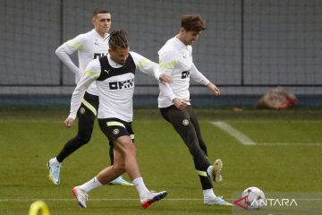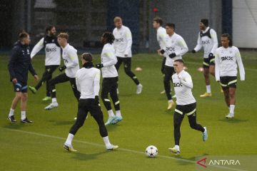 Pesepak bola Manchester City menjalani sesi latihan jelang laga Liga Champions di Etihad Campus, Manchester, Inggris, Selasa (1/11/2022). City akan menghadapi Sevilla pada Rabu (2/11/2022). ANTARA FOTO/Action Images via Reuters/Ed Sykes/foc.