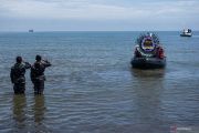 Anggota TNI melakukan penghormatan usai membawa karangan bunga yang akan ditebar di laut di Pantai Utara Kabupaten Batang, Jawa Tengah, Kamis (10/11/2022). Memperingati Hari Pahlawan Nasional 2022, Pemda Kabupaten Batang melaksanakan tabur bunga di taman makam pahlawan dan pantai utara Jawa. ANTARA FOTO/Harviyan Perdana Putra/foc.