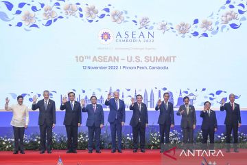 Presiden Joko Widodo (keempat kanan) bersama kepala negara/pemerintahan negara-negara ASEAN dan Presiden Amerika Serikat Joe Biden (kelima kiri) mengikuti sesi foto bersama saat menghadiri Konferensi Tingkat Tinggi (KTT) ASEAN - AS dalam rangkaian KTT ASEAN 2022 di Hotel Sokha, Phnom Penh, Kamboja, Sabtu (12/11/2022). KTT ASEAN - AS di antaranya membahas kemitraan Amerika Serikat dengan negara-negara di Asia Tenggara. ANTARA FOTO/Hafidz Mubarak A/aww.