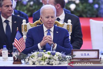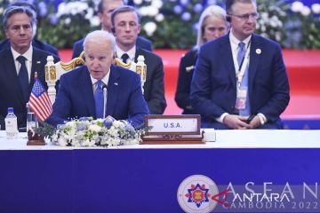 Presiden Amerika Serikat Joe Biden menghadiri Konferensi Tingkat Tinggi (KTT) ASEAN - AS dalam rangkaian KTT ASEAN 2022 di Hotel Sokha, Phnom Penh, Kamboja, Sabtu (12/11/2022). KTT ASEAN - AS di antaranya membahas kemitraan Amerika Serikat dengan negara-negara di Asia Tenggara. ANTARA FOTO/Hafidz Mubarak A/aww.