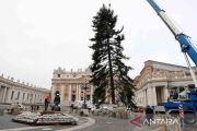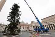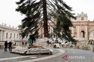 Pohon Natal raksasa tiba di Lapangan Santo Petrus jelang musim perayaan di Vatikan, Kamis (17/11/2022). ANTARA FOTO/REUTERS/Remo Casilli/rwa.