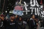 Suporter Arema FC (Aremania) membawa poster saat berunjukrasa memblokir jalan selama dua jam di jalan Danau Toba, Malang, Jawa Timur, Minggu (20/11/2022). Unjuk rasa blokir jalan yang juga dilakukan di sejumlah titik di kota Malang tersebut dilakukan untuk memprotes aparat penegak hukum yang dinilai lamban dalam pengusutan kasus Tragedi Kanjuruhan. ANTARA FOTO/Ari Bowo Sucipto/hp.