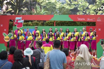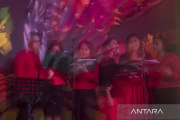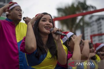 Kelompok paduan suara lagu Natal atau Christmas Carol dari Y2K Choir tampil dalam rangka menyambut Hari Natal di Jalur pedestrian kawasan Bundaran HI, Jakarta, Kamis (22/12/2022). Kegiatan yang digelar mulai 19-23 Desember 2022 di sejumlah lokasi seperti Terowongan Kendal, Kota Tua dan Pedestrian Hotel Indonesia tersebut untuk menyambut perayaan Natal 2022. ANTARA FOTO/Wahyu Putro A/aww.
