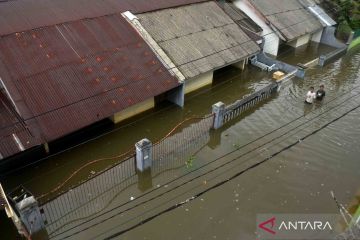 Kondisi rumah yang terendam banjir di Kecamatan Manggala, Makassar, Sulawesi Selatan, Minggu (25/12/2022). Curah hujan yang tinggi dalam beberapa hari membuat sungai dan waduk di kota Makassar meluap sehingga mengakibatkan ratusan rumah dan jalan terendam banjir. ANTARA FOTO/Abriawan Abhe/wsj.