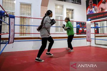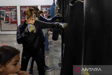 Sejumlah petinju berlatih di klub tinju wanita, Gaza City, Jumat (23/12/2022). ANTARA FOTO/Xinhua/Rizek Abdeljawad/rwa.