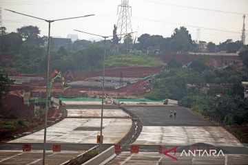 Pekerja dengan alat berat mengerjakan pembangunan jalan Tol Serpong - Cinere di ruas Pamulang - Cinere, di Pondok Cabe, Tangerang Selatan, Banten, Rabu (4/1/2023). Pembangunan jalan Tol Serpong - Cinere akan tersambung langsung dengan main road Jalan Tol Cinere-Jagorawi yang dapat mempersingkat jarak dan waktu tempuh masyarakat yang akan ke Bogor dari Tangerang atau sebaliknya. ANTARA FOTO/Muhammad Iqbal/aww.